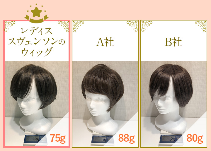 | レディススヴェンソン | A社のウィッグ | B社のウィッグ | |